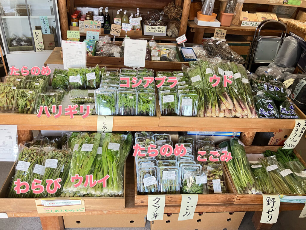2026.04.24(金) お知らせ 【やまっく】コシアブラ入荷しました! (売り場の状況は毎日変わります) 毎度ありがとうございます。やまっくです。 例年連休中に咲くそば屋横の八重桜が満開です。 天然のコシアブラが大量入荷しました。天ぷらでどうぞ。 ほか、タラの芽、ワラビ、ウドなど新鮮な山菜盛りだくさんです!季節の味をお楽しみください。 4月~12月営業時間…9時~16時30分 【Instagram更新中】 直売所直通電話…023-645-8313