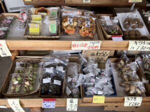 直売所「やまっくハウス」では、季節の山菜・きのこ、地元農産物、木工品などを販売しています。